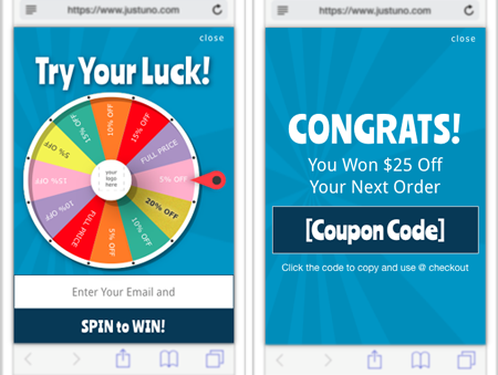 Give your mobile visitors a fun way to win a discount on your website while you build your e-mail list.
